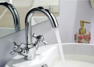 2. Двухвентильные смесители. Такие чаще всего ставят в ванной с классическим интерьером. Настраивает температуру точнее, а поток мощнее, чем однорычажный. С другой стороны, этот смеситель невозможно быстро перекрыть, им не удобно управлять одной рукой.