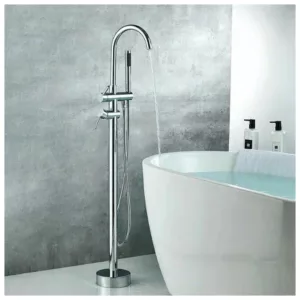 3. Напольные смесители. Изысканное решение для просторной ванной комнаты. Чтобы установить такой смеситель, нужно хорошо продумать интерьер и точно подвести под него трубы. Конечно, и обслуживание требует особого подхода.